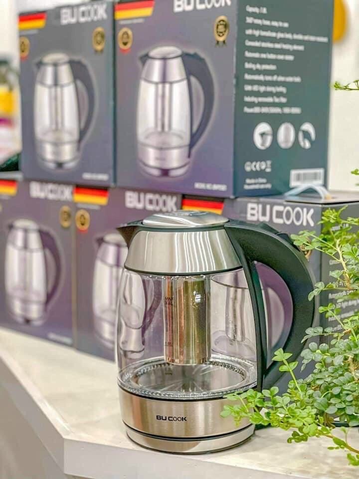 Ấm siêu tốc thuỷ tinh kèm lõi lọc trà inox Bucook dung tích 1.8L được làm từ chất liệu thủy tinh trong suốt mang lại vẻ đẹp sang trọng, tinh tế và trang nhã cho căn bếp của gia đình bạn.