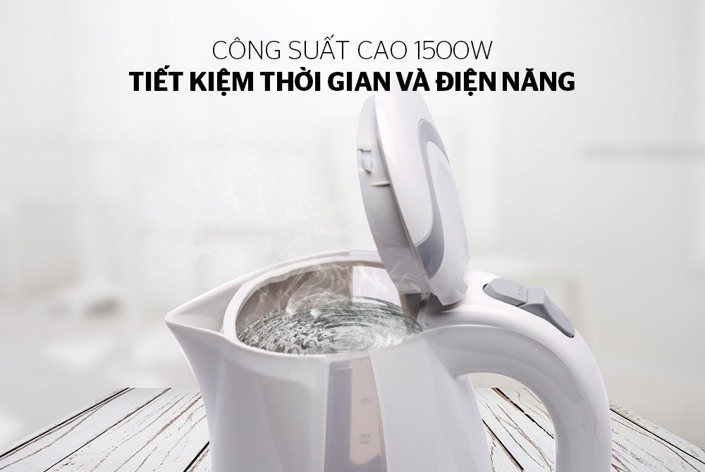 Công suất mạnh mẽ 1850W cho thời gian nấu nước nhanh chóng, giúp tiết kiệm điện năng tối đa, đồng thời không sản sinh ra các chất độc hại dưới tác động của nhiệt độ cao.