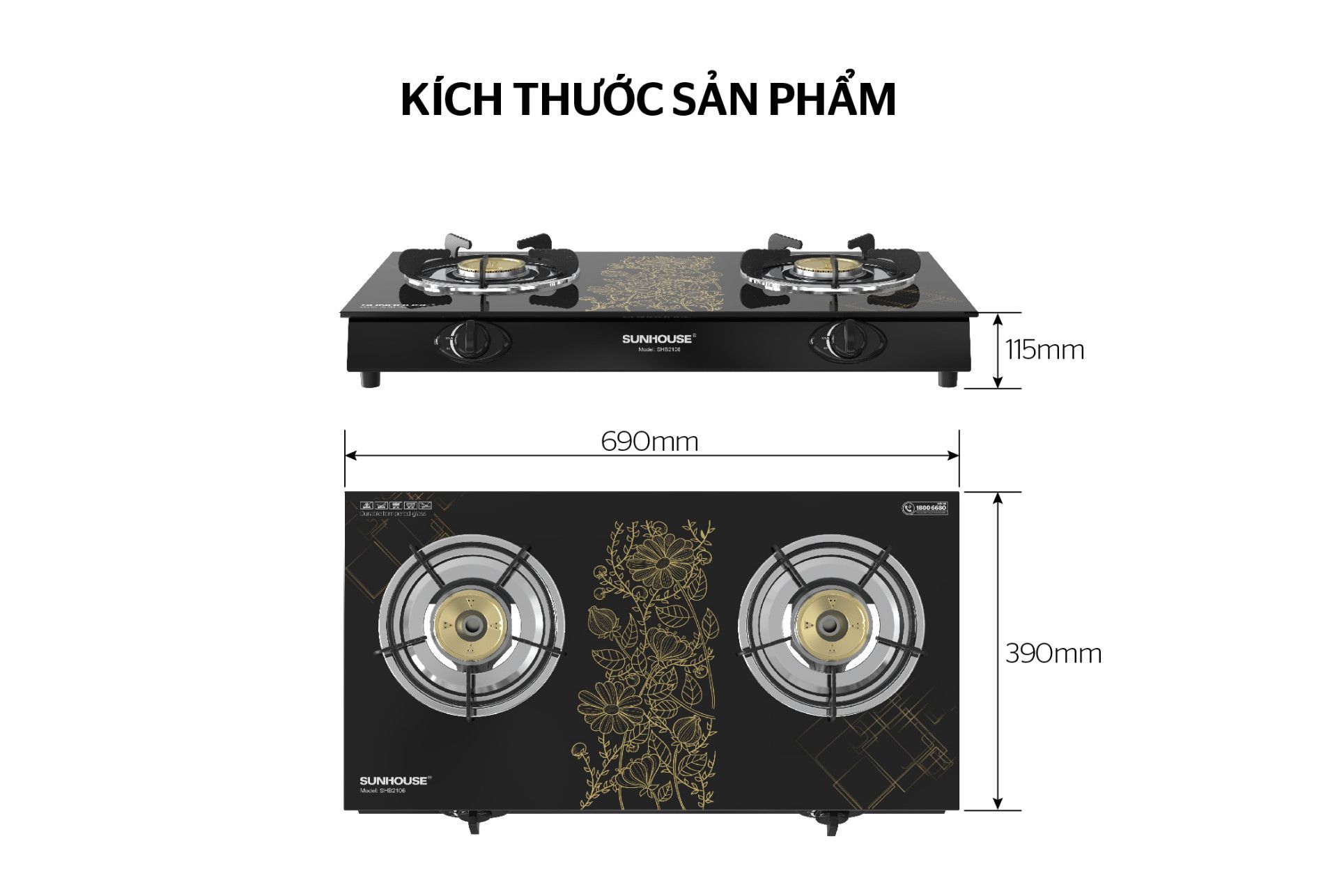 Bếp Gas Dương Kính Sunhouse SHB2106