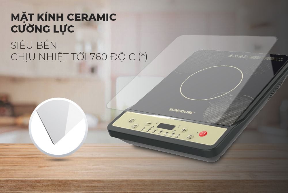 Bên cạnh đó, do không làm nóng mặt bếp nên sử dụng bếp từ đơn SUNHOUSE ít làm tỏa nhiệt ra môi trường xung quanh, giúp căn bếp bớt bí bách, nóng nực.