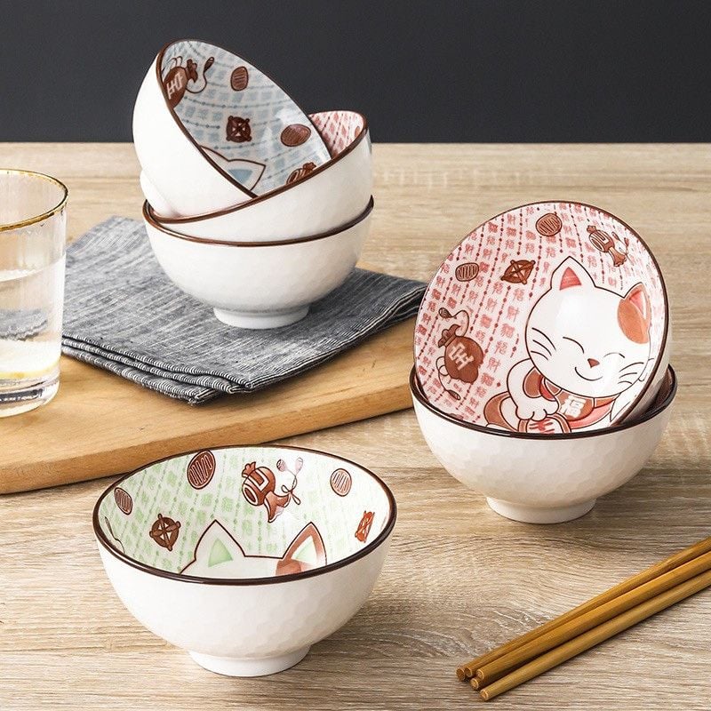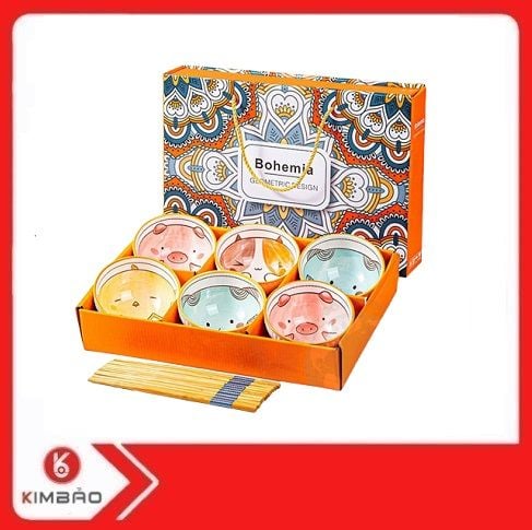 Bộ 6 Chén 6 Đũa Hình Thú Kute hình dáng khác nhau, không tuân theo bất cứ quy tắc nào nhưng đặt lên bàn, nhìn tổng thể bạn sẽ thấy bộ bát sứ Bohemia này tỏa ra 1 vẻ đẹp khác lạ, độc đáo không dễ gì có được.