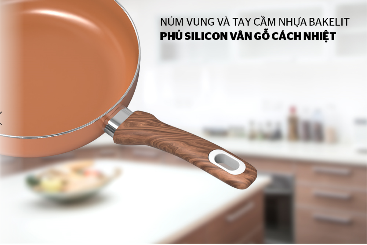 - Tay cầm nhựa bakelit phủ silicon vân gỗ chắc chắn – cách nhiệt