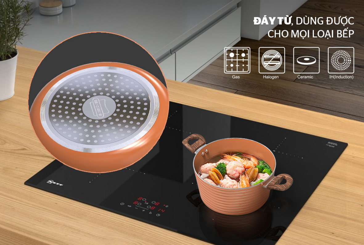 Nồi và chảo có đáy từ, dùng được trên mọi loại bếp: bếp gas, bếp hồng ngoại, bếp từ,...