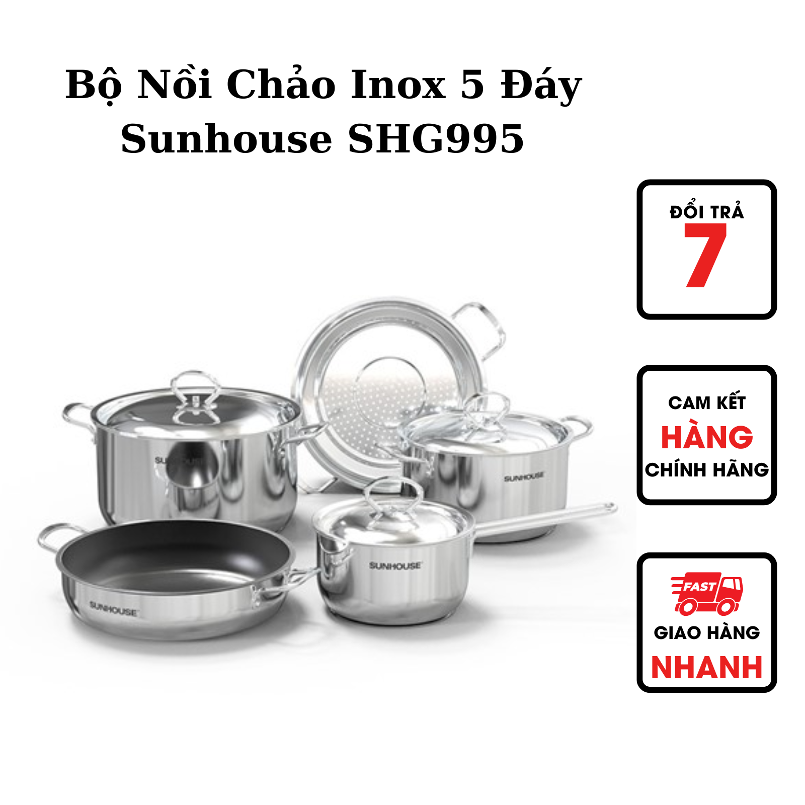 Bộ Nồi Chảo Inox 5 Đáy Sunhouse SHG995