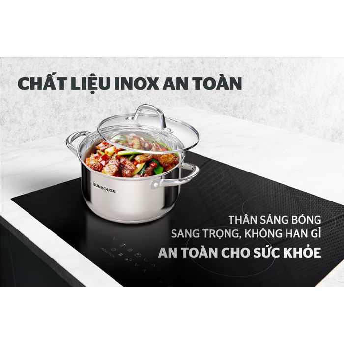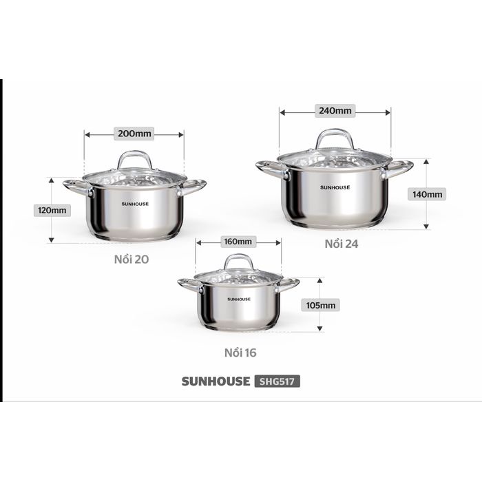 Bộ nồi inox 5 đáy Sunhouse SHG517 ĐÁY TỪ _DÙNG MỌI LOẠI BẾP