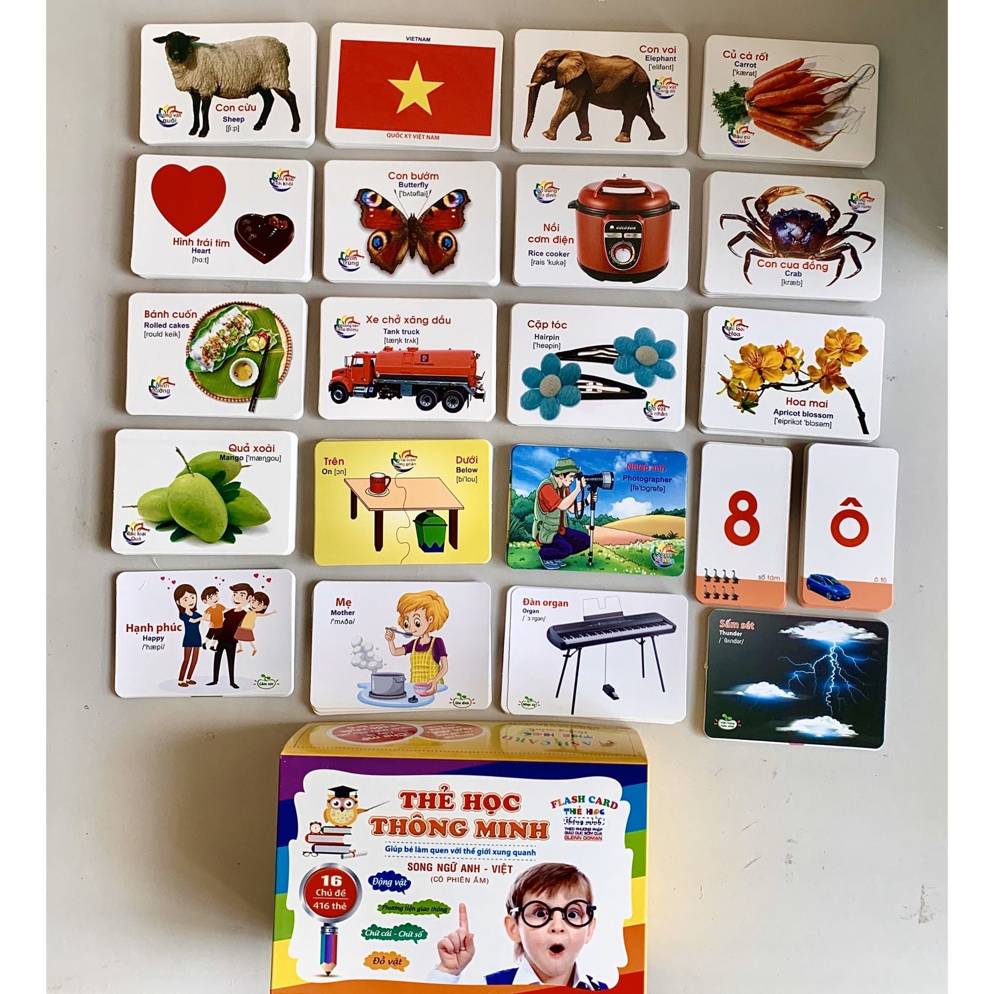Bộ Thẻ Học Thông Minh Flashcards 16 Chủ Đề Cho Bé Học - Bộ 416 Thẻ Học Sông Ngữ Anh Việt Cao Cấp