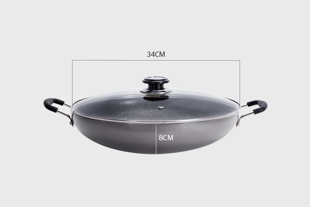 Với đường kính lớn (34cm), sâu đến 8cm, chảo có thể chiên xào được lượng thức ăn lớn