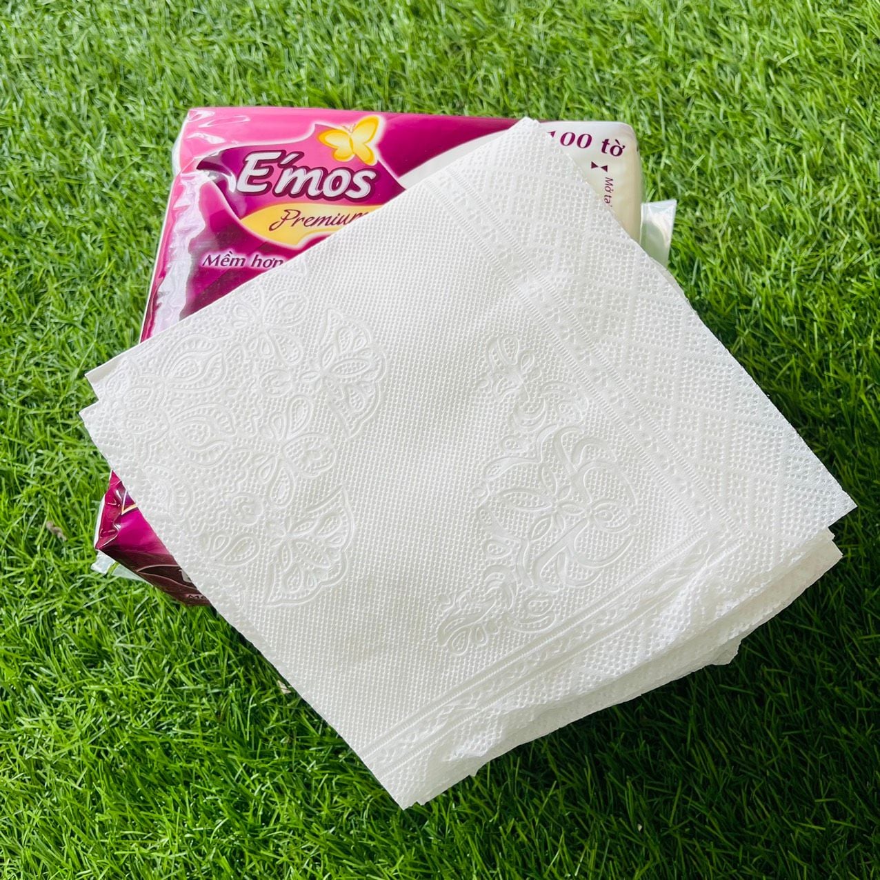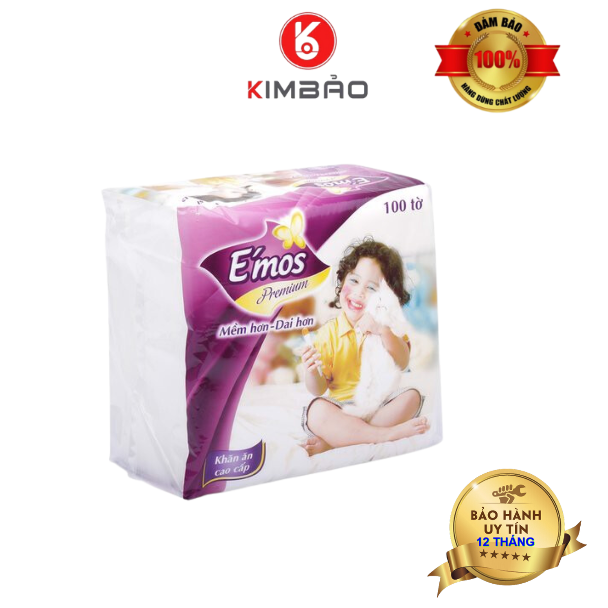 - Tên sản phẩm: Khăn giấy ăn cao cấp E'mos Premium 1 lớp (100 tờ)