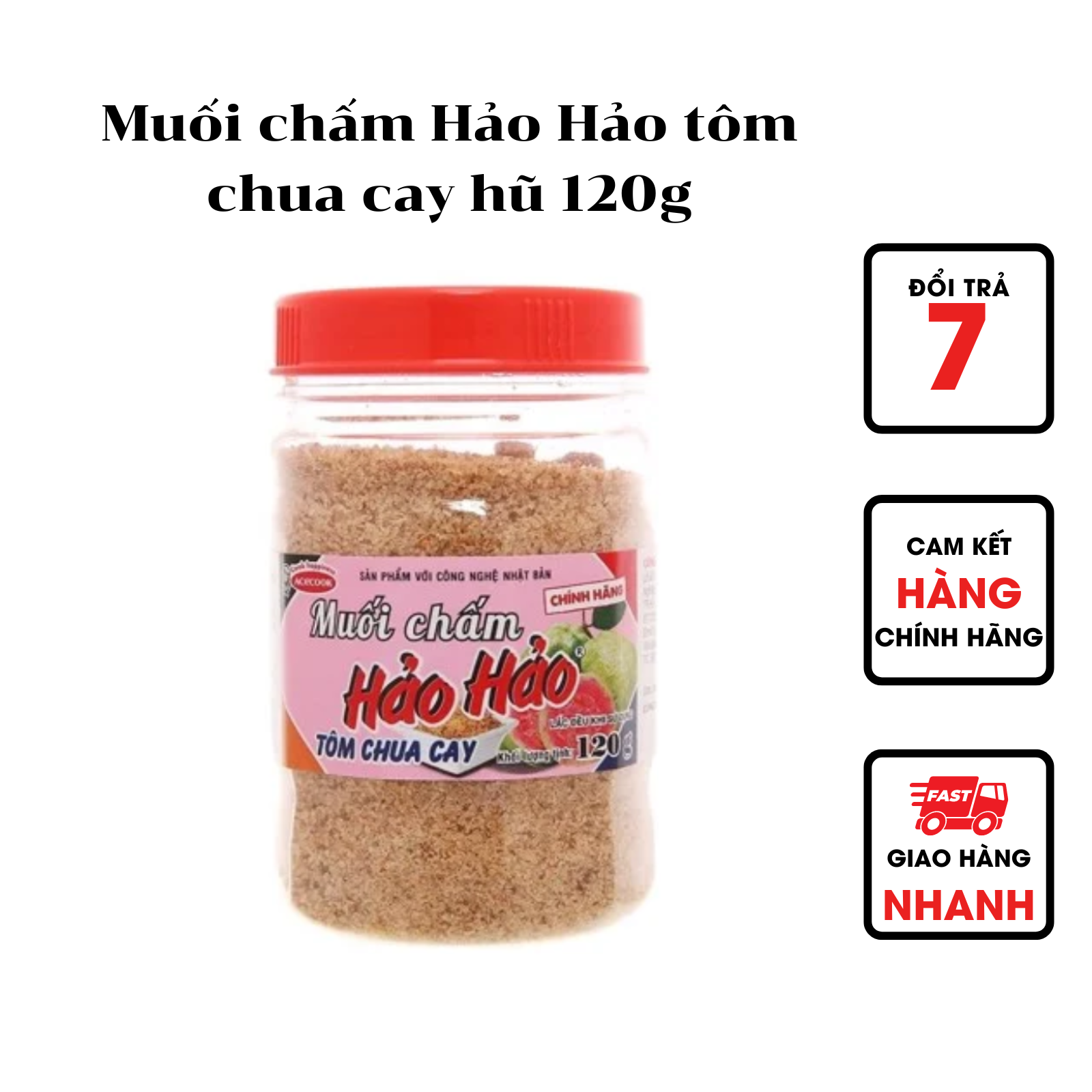 Muối chấm Hảo Hảo tôm chua cay hũ 120g có thể dùng chấm trái cây, làm gia vị nêm nếm giúp món ăn thơm và đậm vị chua cay độc đáo. Muối Hảo Hảo là loại muối "quốc dân" được sản xuất theo công nghệ Nhật Bản đảm bảo an toàn cho sức khỏe và rất được ưa chuộng hiện nay.