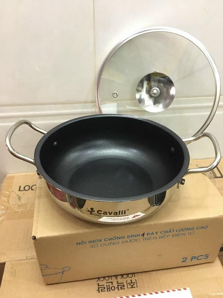Nồi 2 Quai Cavalli 20cm được phủ lớp chống dính và chống quá nhiệt không chứa PFOA độc hại nên đảm bảo an toàncho sức khỏe, chiên xào ít hao dầu, lòng chảo được tạo giúp đảo, xào thức ăn dễ dàng, tiện lợi, chảo dễ chùi rửa.