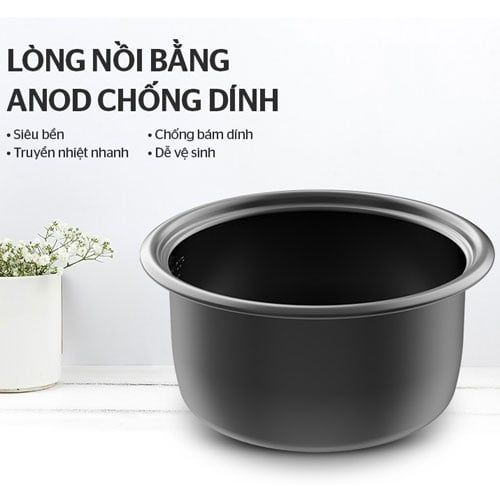 SUNHOUSE SHD8132 được trang bị lòng nồi Anod với độ bền cao, truyền nhiệt nhanh, chịu lực tốt, ít bị móp méo khi va đập, đồng thời an toàn tuyệt đối, không làm phát sinh chất có hại khi tiếp xúc ở nhiệt độ cao. Lớp chống dính Whitford (USA) siêu bền, hạn chế bong tróc, tránh bám dính cơm để đáy nồi và giúp cho việc vệ sinh trở nên nhanh chóng hơn.