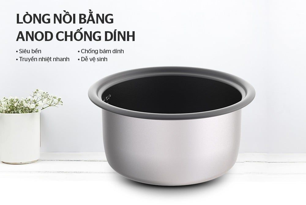 SUNHOUSE SHD8133 được trang bị lòng nồi Anod với độ bền cao, truyền nhiệt nhanh, chịu lực tốt, ít bị móp méo khi va đập, đồng thời an toàn tuyệt đối, không làm phát sinh chất có hại khi tiếp xúc ở nhiệt độ cao. Lớp chống dính Whitford (USA) siêu bền, hạn chế bong tróc, tránh bám dính cơm để đáy nồi và giúp cho việc vệ sinh trở nên nhanh chóng hơn.