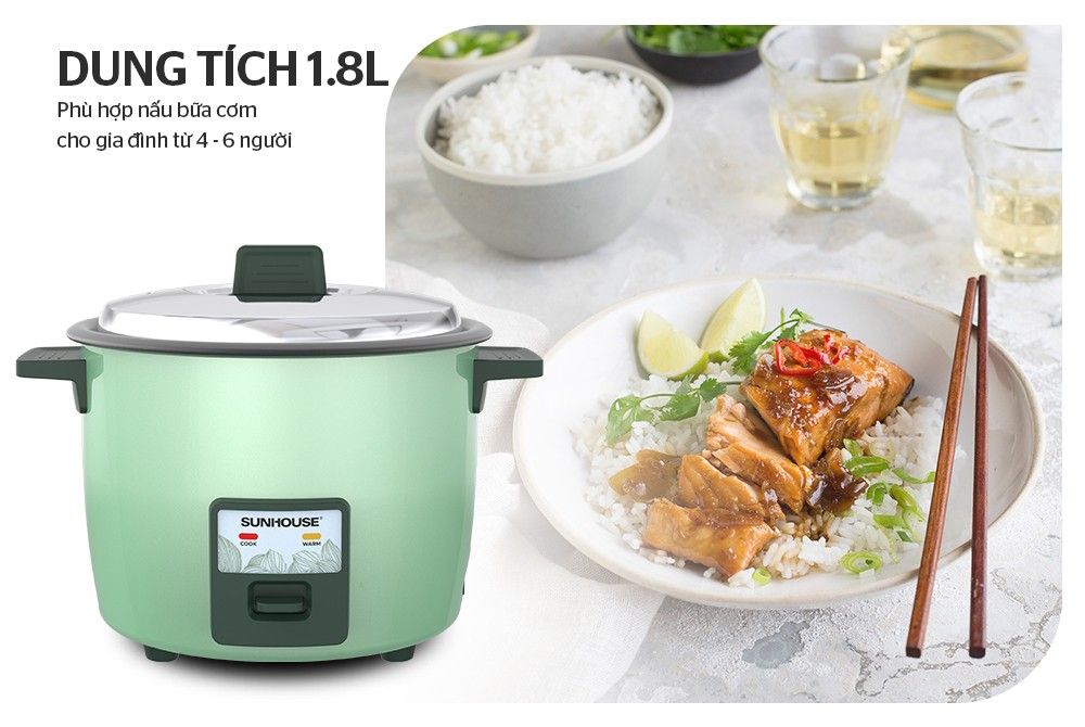 Với thiết kế vung rời thuận tiện, dễ sử dụng và vệ sinh, nồi cơm điện 1.8L SUNHOUSE SHD8133 chắc chắn sẽ đáp ứng nhu cầu sử dụng của gia đình bạn một cách hoàn hảo nhất. Sở hữu khả năng nấu nướng nhanh chóng, tiết kiệm điện năng và thời gian, kết cấu chắc chắn với những bộ phận cấu thành chất lượng cao và dung tích lớn 1.8L, SUNHOUSE SHD8133 phù hợp cho những gia đình đông thành viên, nhà hàng, quán ăn.