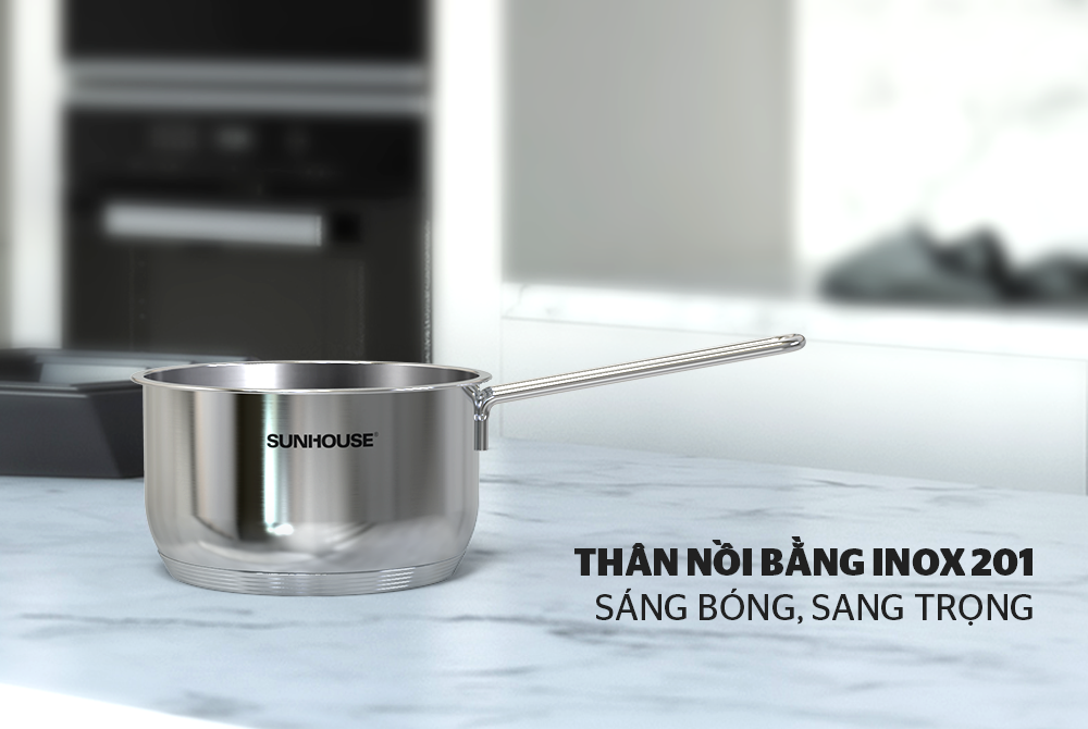 Chất liệu inox 201 cao cấp giúp cho nồi SHG508-16 sáng bóng, dễ dàng lau rửa, vệ sinh sau mỗi lần sử dụng. Kiểu dáng của bộ nồi sang trọng, góp phần tạo nên vẻ hiện đại, tinh tế cho không gian nhà bếp của bạn.