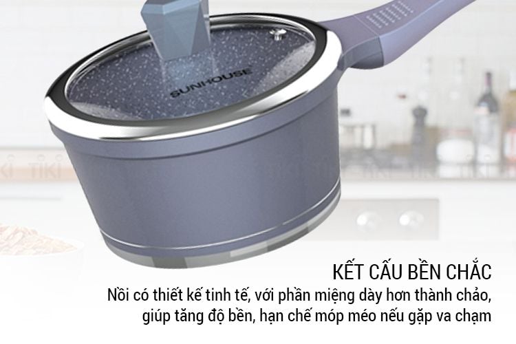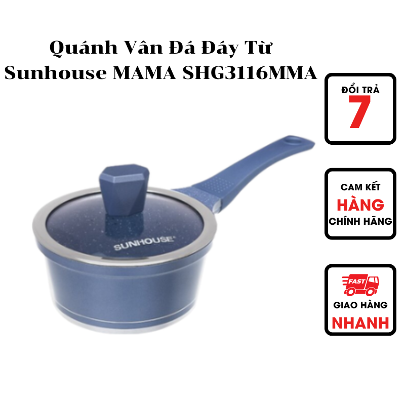 Quánh vân đá đáy từ SUNHOUSE MAMA SHG3116MMA tuy là sản phẩm quen thuộc nhưng lại rất nổi bật bởi thiết kế hiện đại và khả năng chống dính siêu bền, dẫn nhiệt tốt, an toàn tuyệt đối cho sức khỏe và dùng được cho mọi loại bếp.