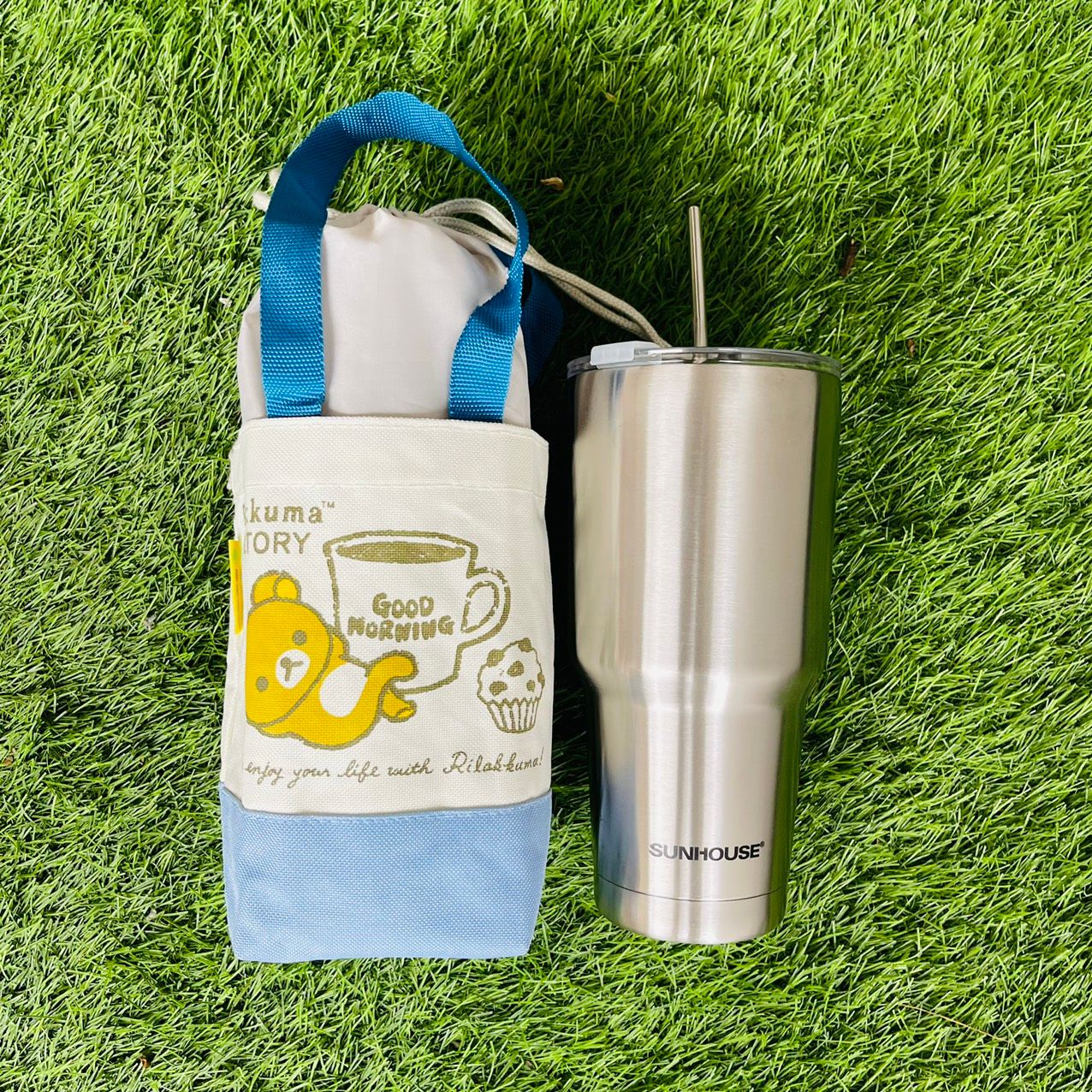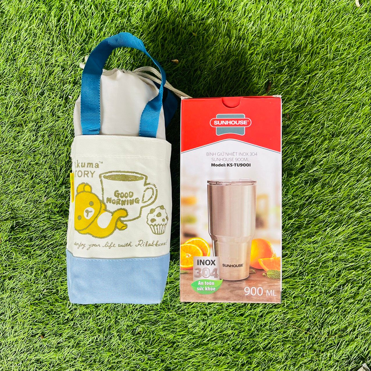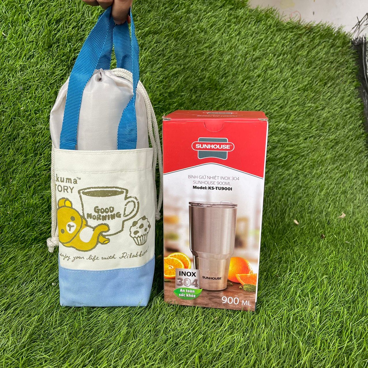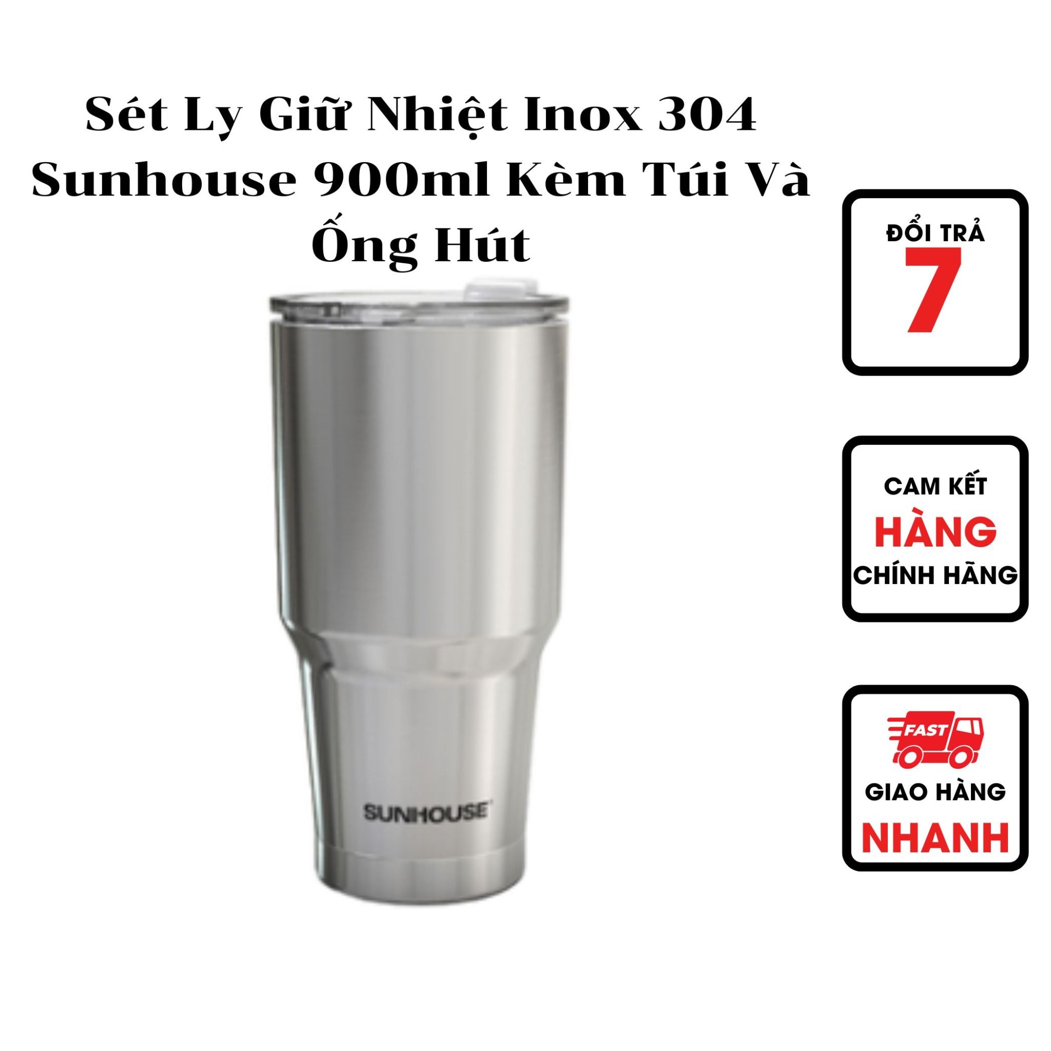 Sét Ly Giữ Nhiệt Inox 304 Sunhouse 900ml Kèm Túi Và Ống Hút